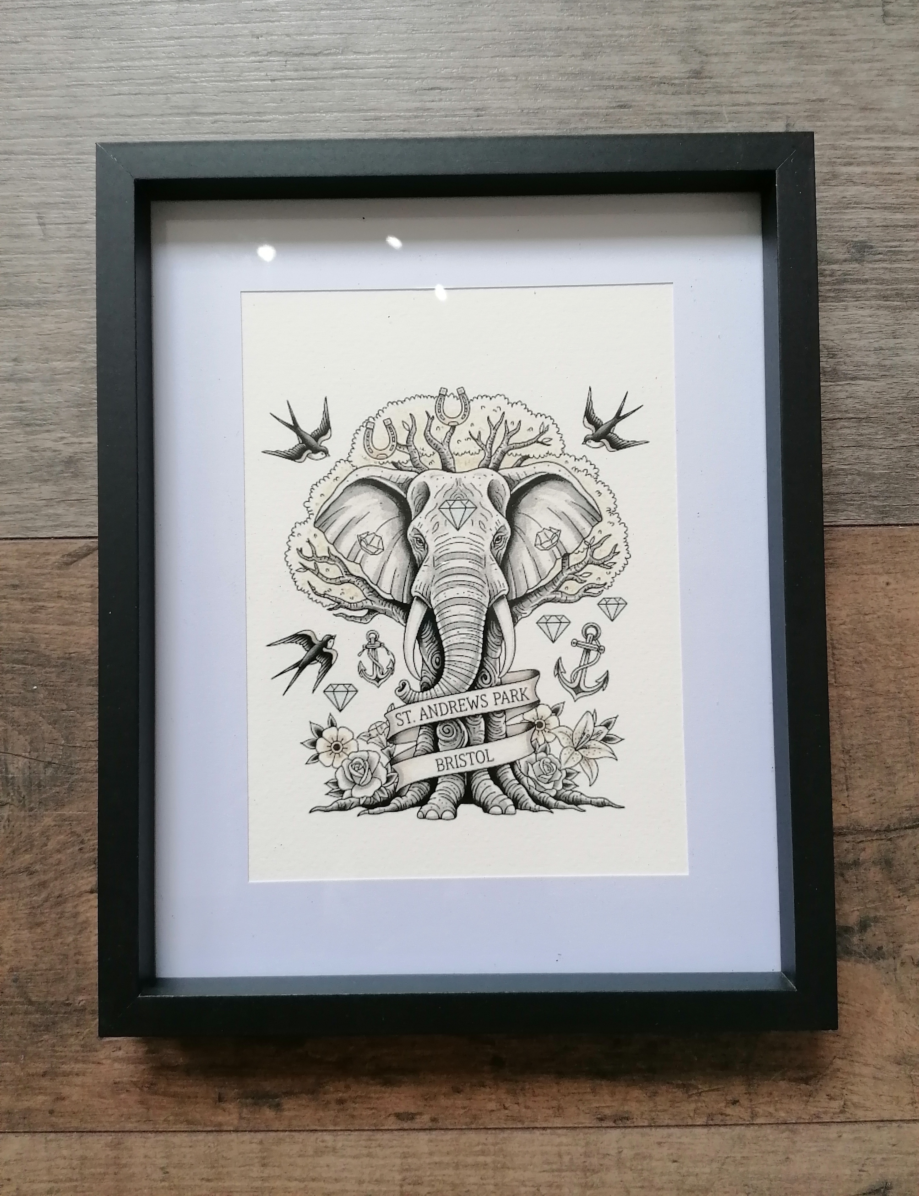 Framed print made by a Bristol based artist and printmaker Bethan’s Lino Prints.