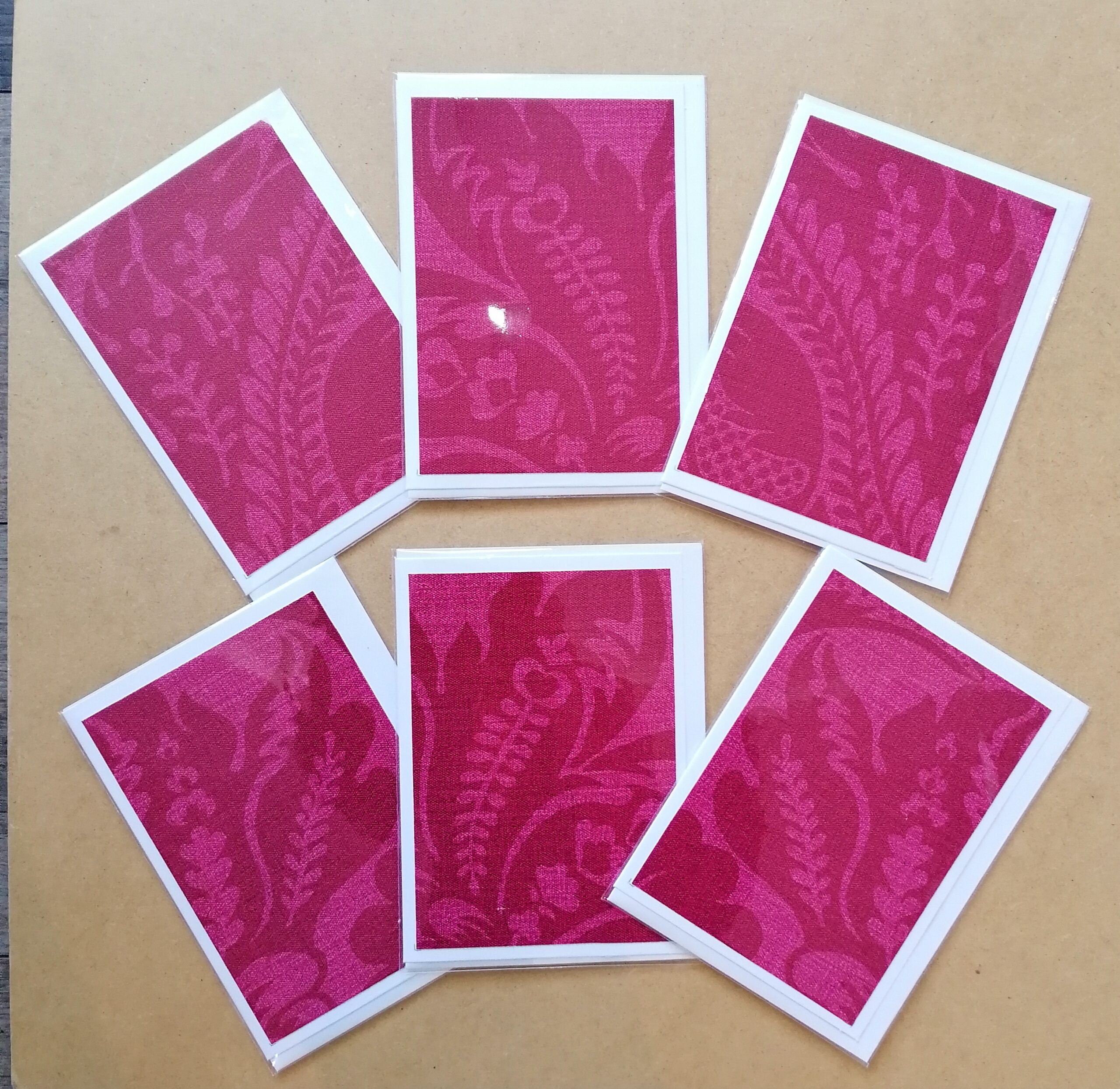 This design has various red textile patterns.
