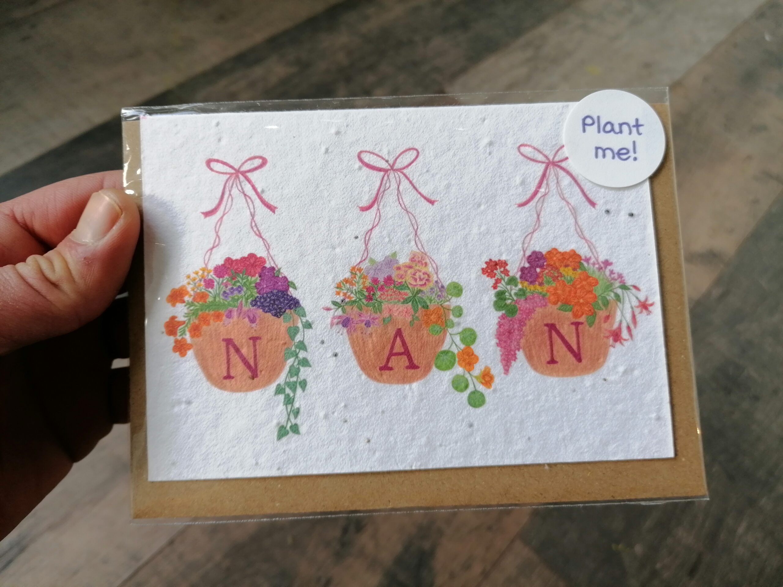 A6 Plantable Card – 3x Hanging Baskets “Nan” (SPDGC130S)
