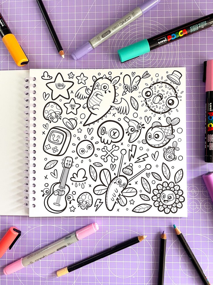 High-quality paper suitable for a variety of mediums, including coloured pencils, alcohol markers, and paint pens.