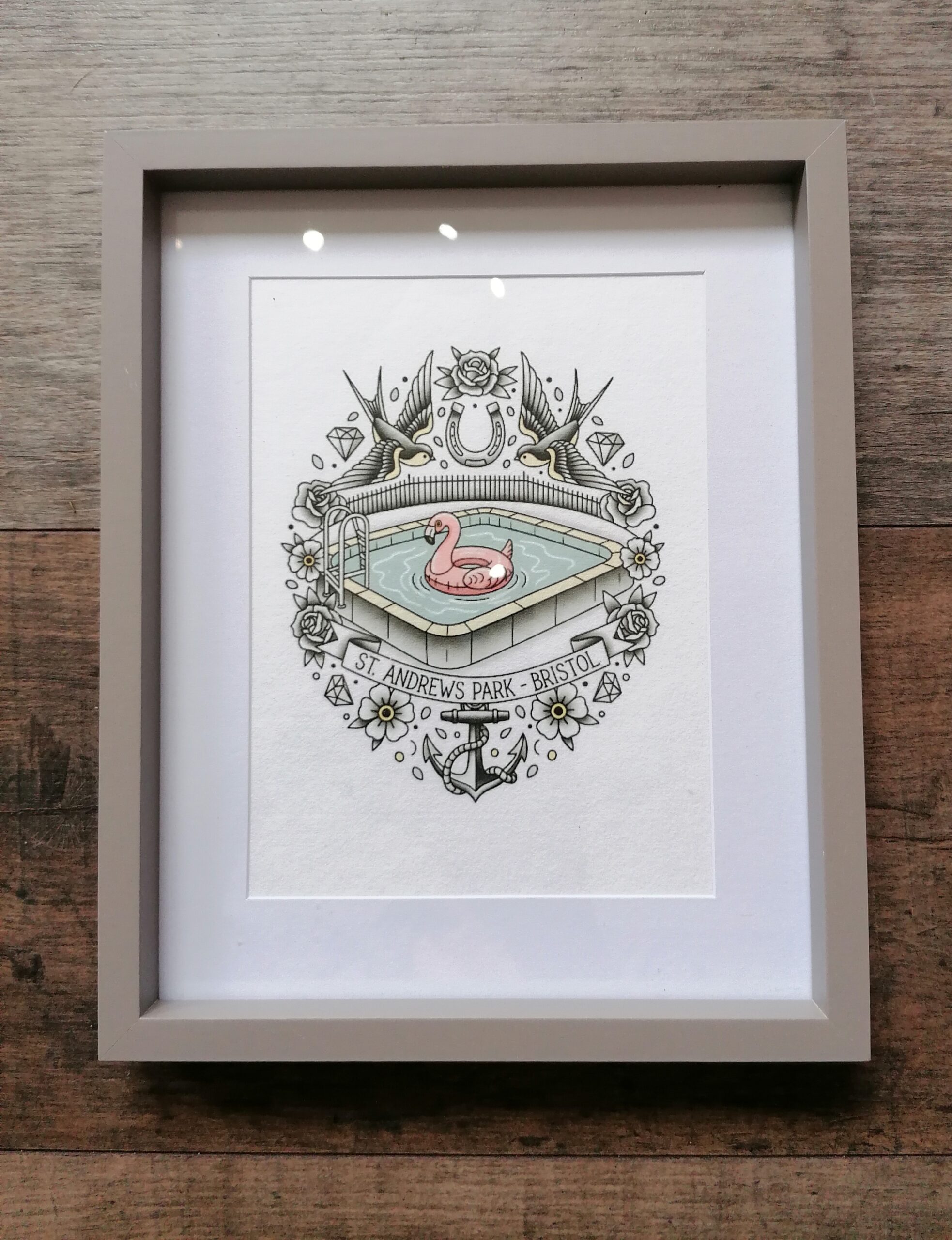 Framed print made by a Bristol based artist and printmaker Bethan’s Lino Prints.