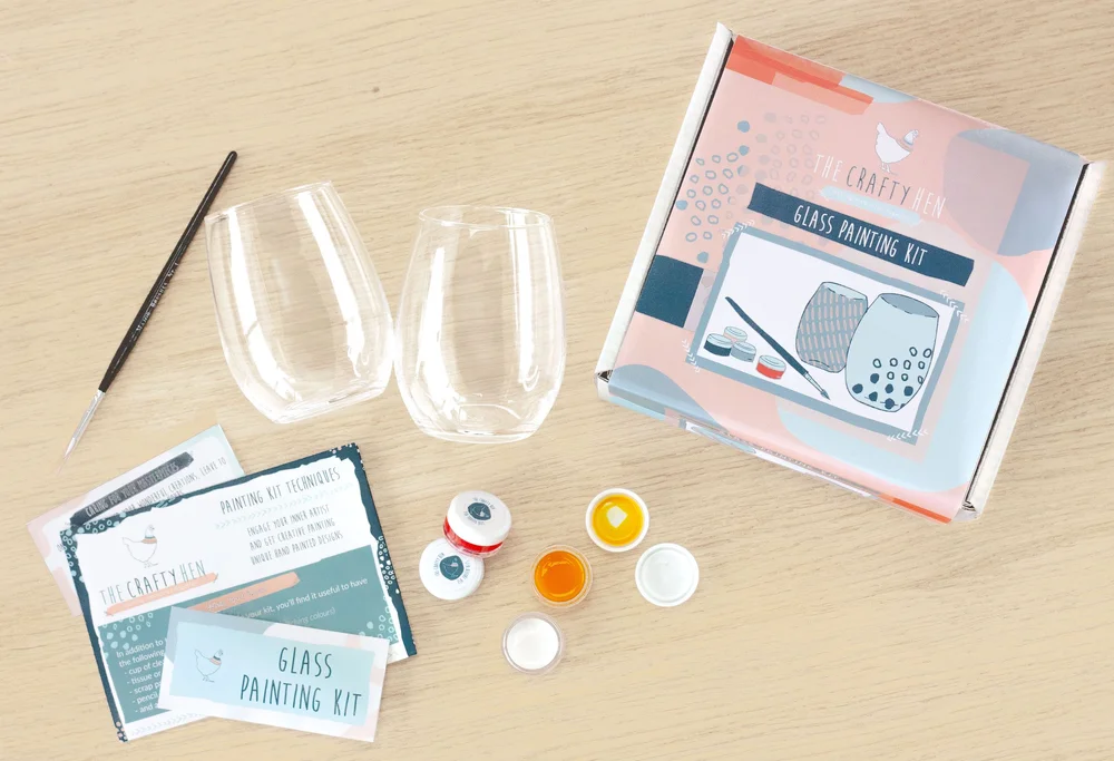 In these DIY glass painting kits you’ll find two glasses, four glass paints, a paintbrush, as well as inspiration and top tips to inspire your designs. All you’ll need to provide is a cup of water, old plastic tubs (like, yoghurt pots) for mixing colours, and some kitchen roll or tissue.
