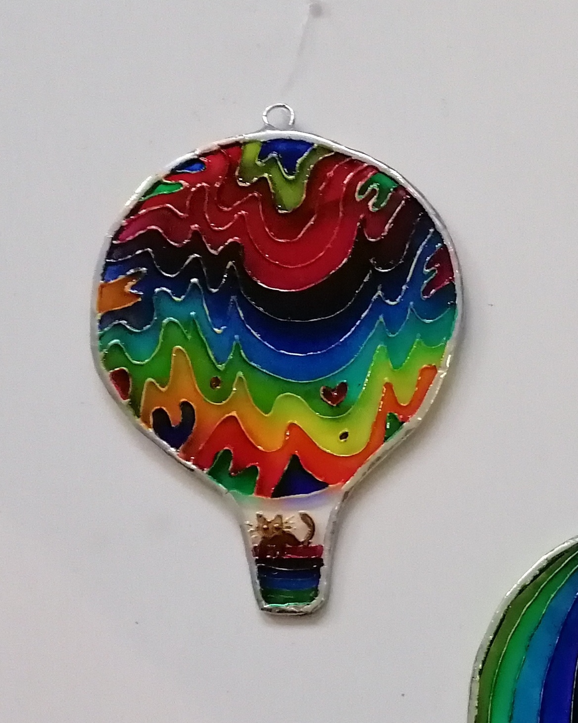 Hanging Painted Glass Decoration - Patterned Medium Swirly Hot Air Balloon quantity