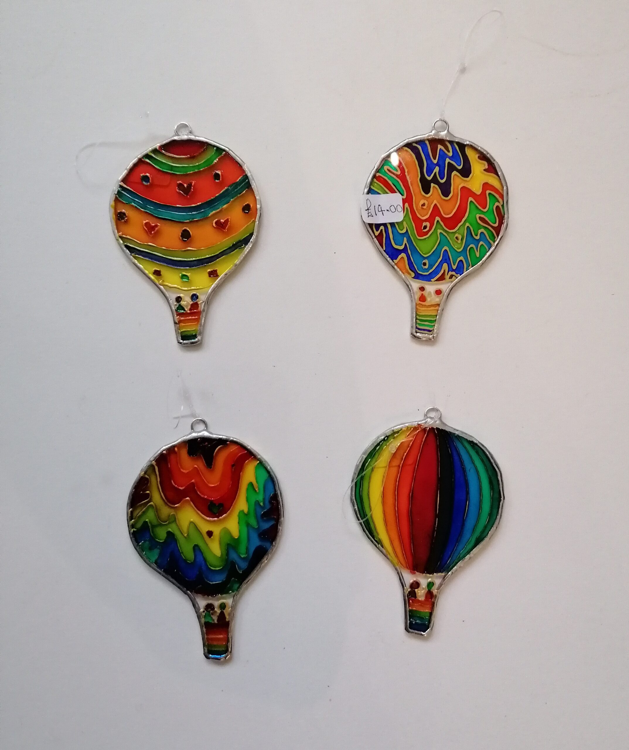 Hanging Painted Glass Decoration – Small Hot Air Balloon (Various Designs And Colours)