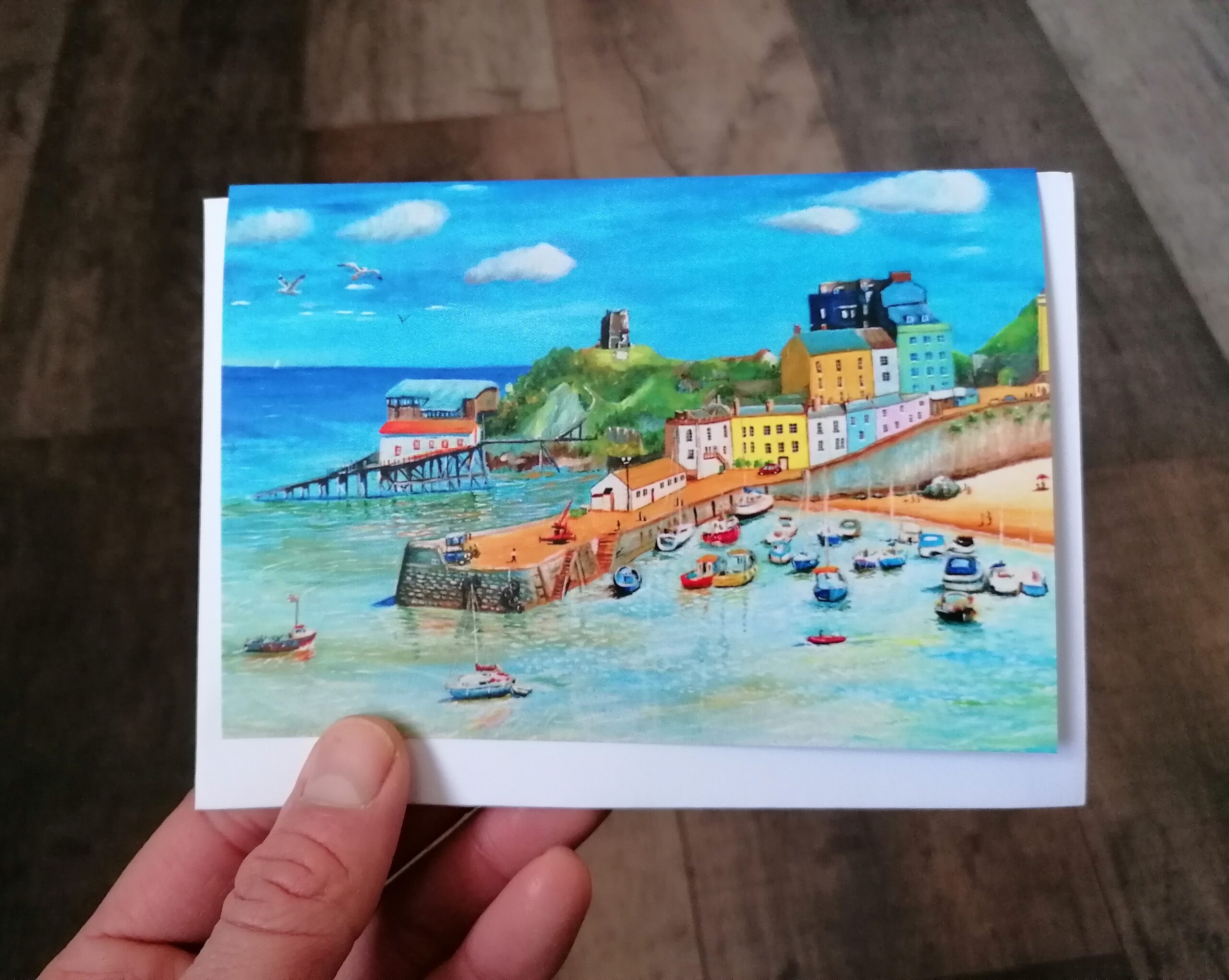 Original A6 greeting card with colourful design based on an original acrylic painting by Bristol based artist Diego Godoy. The card is left blank inside and comes sealed in a clear cello bag.