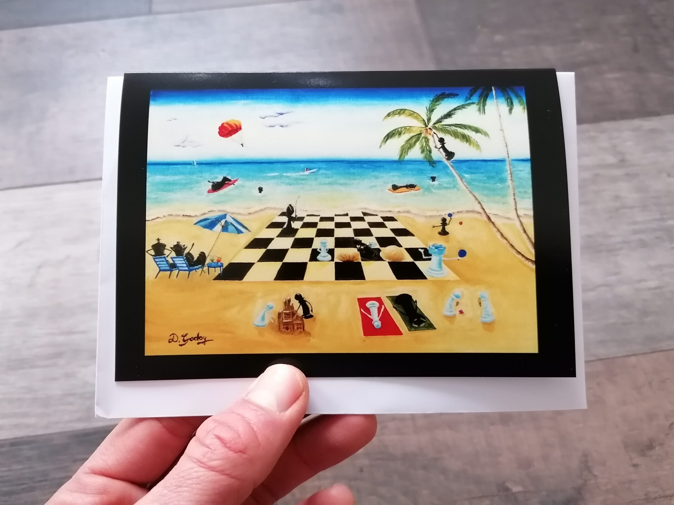 Original greeting card with colourful design based on an original oil painting by Bristol based artist Diego Godoy. The card is left blank inside and comes sealed in a clear cello bag.