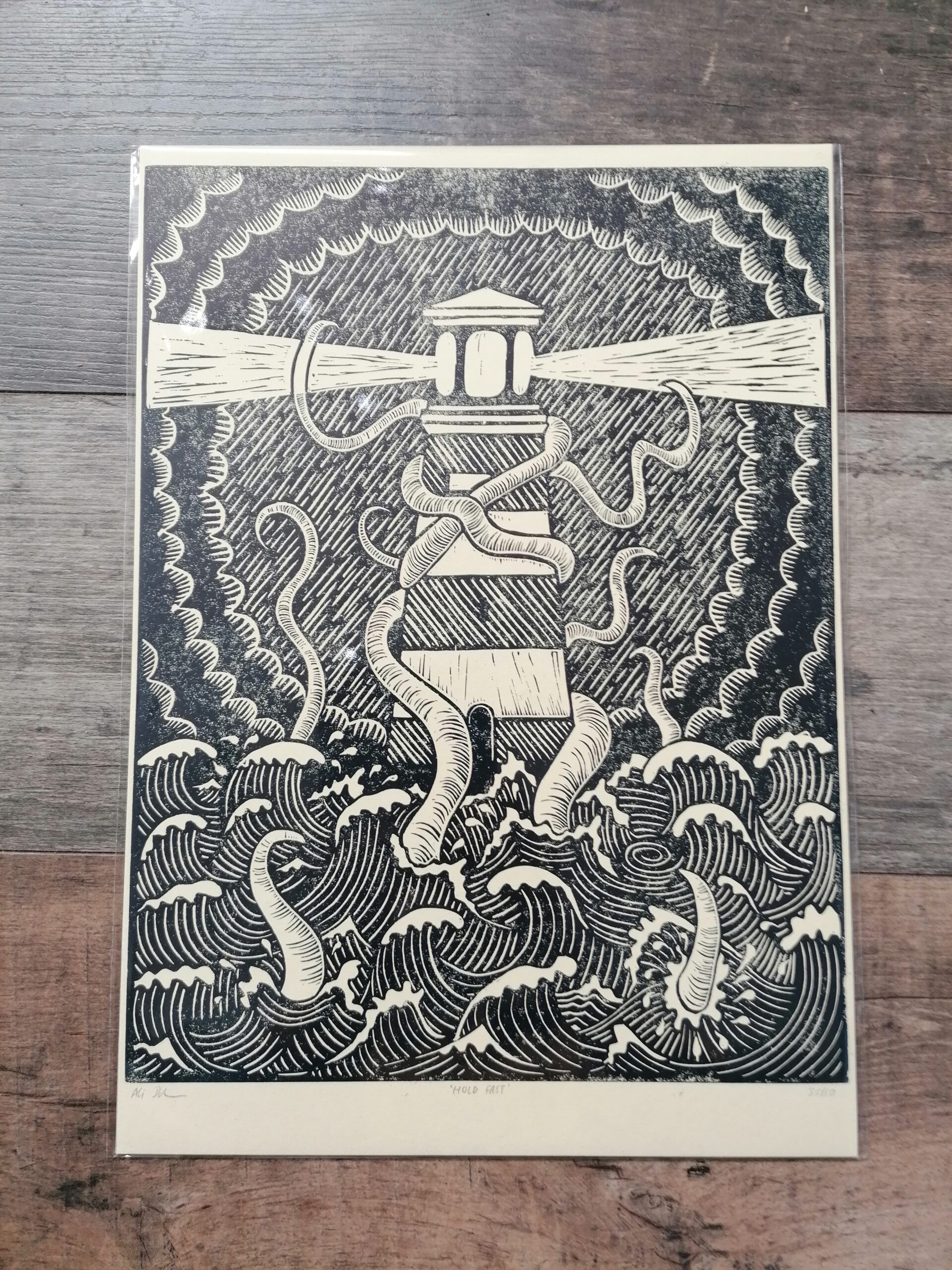 Original limited edition lino print by Bristol based artist Ali donaldson. This print comes unmounted and is unframed.