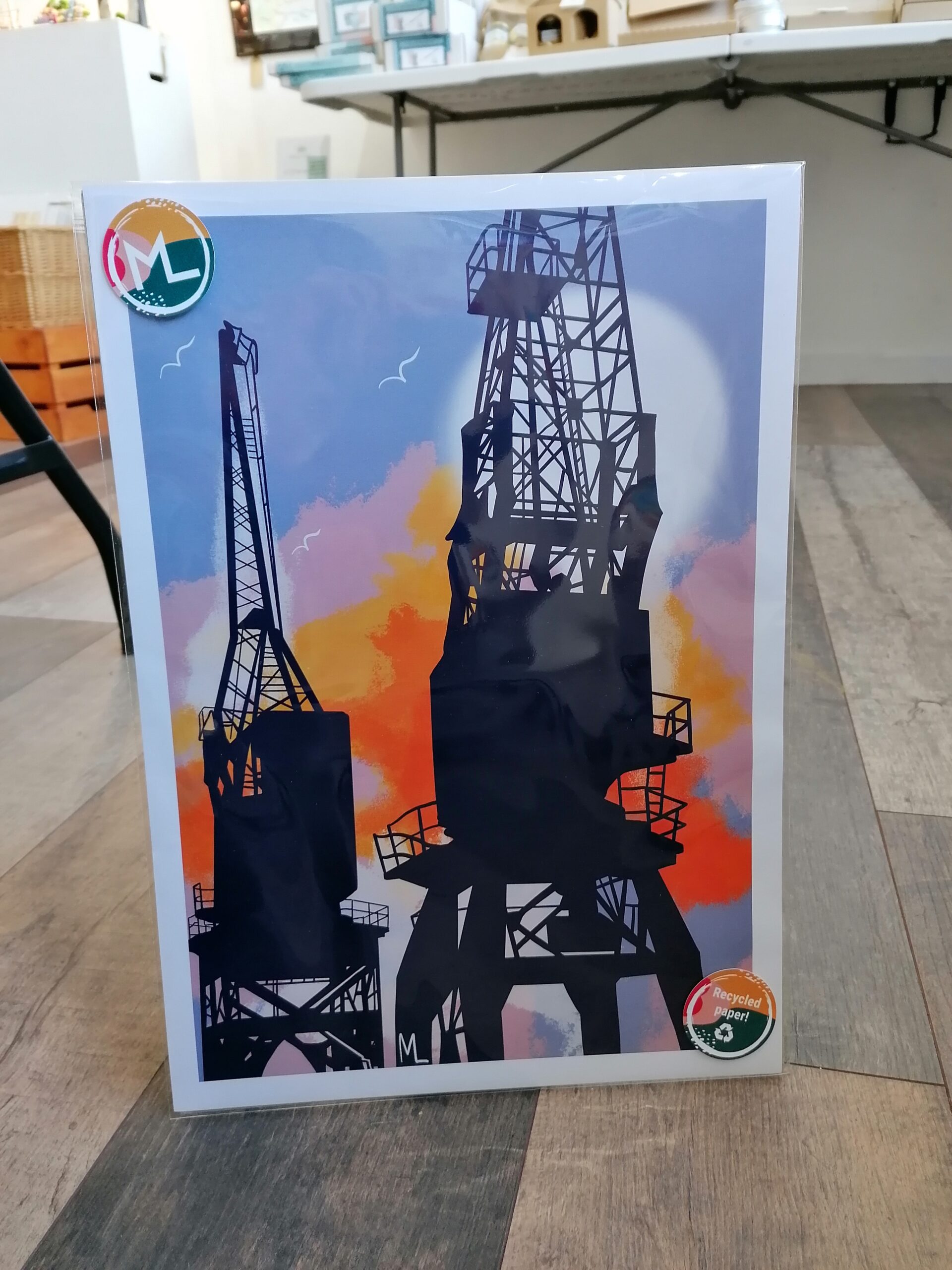 Original Unframed A3 Print – Bristol Harbour Cranes