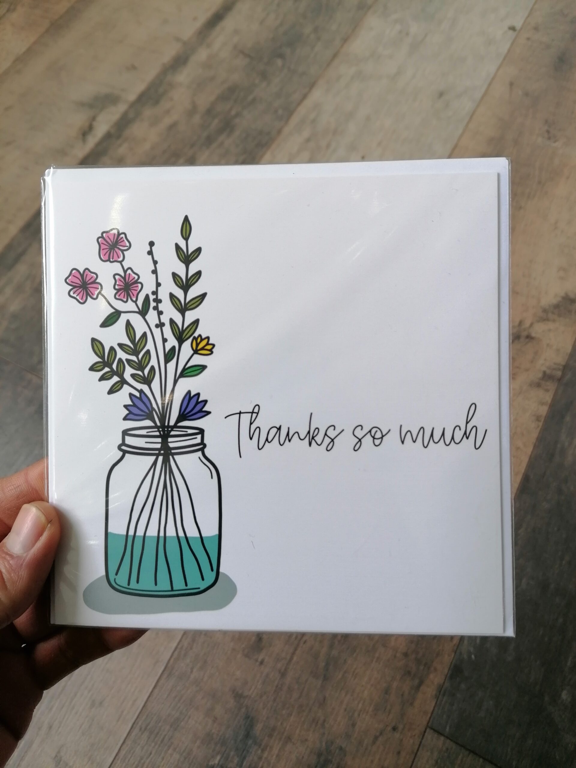 Square Greeting Card – Thanks So Much (Jar With Flowers)